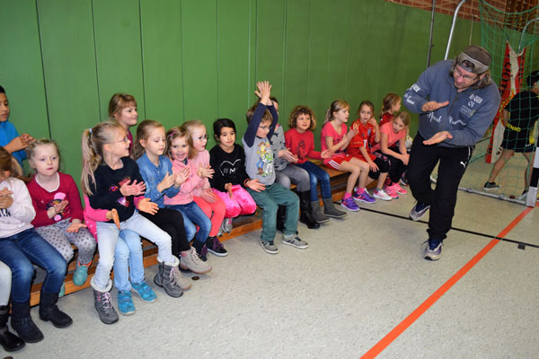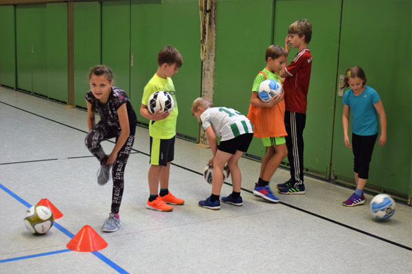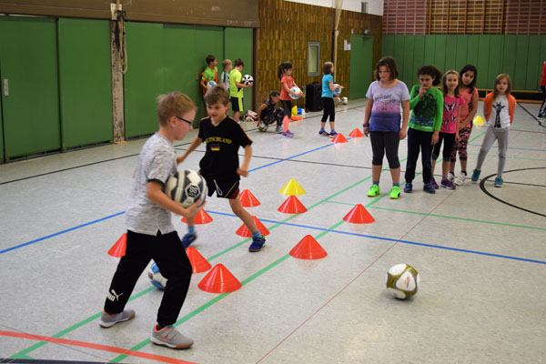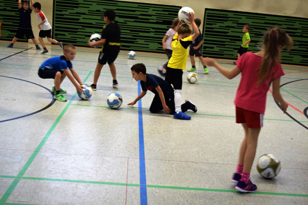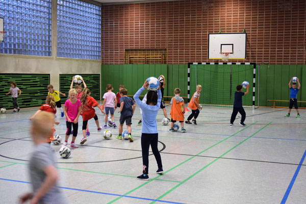 Zum zweiten Mal gastierte die Mitteldeutsche Fußballschule Halle am 7.11.2017 an unserer Grundschule. 60 Schüler/innen aus allen Jahrgängen durften unter der Anleitung der lizensierten Trainer Matze und Thorsten ihre fußballerischen Talente verbessern. Von 8.15 Uhr bis 10.15 Uhr gehörte den Erst- und Zweitklässlern die Turnhalle, dann übernahmen die Teilnehmer des 3. und 4. Jahrgangs.