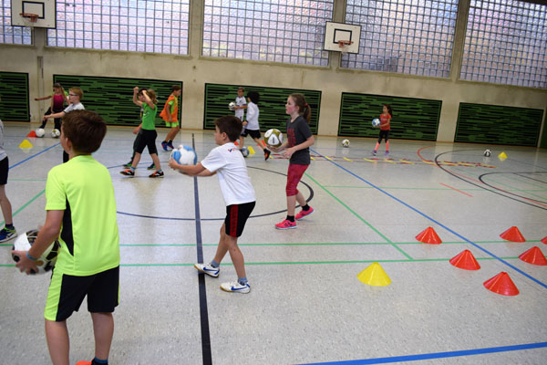 Zunächst absolvierten die Schüler/innen ein Aufwärmtraining an verschiedenen Stationen und erprobten dann Grundelemente wie Koordination, Dribbling, Ballannahme, Passspiel und Torschüsse. Den Abschluss jeder 2-stündigen Trainingseinheit bildete ein Mini-Champions-League Turnier zwischen den Mannschaften von FC Bayern München, Manchester United, FC Barcelona und Inter Mailand.