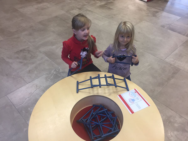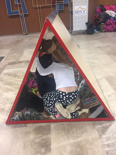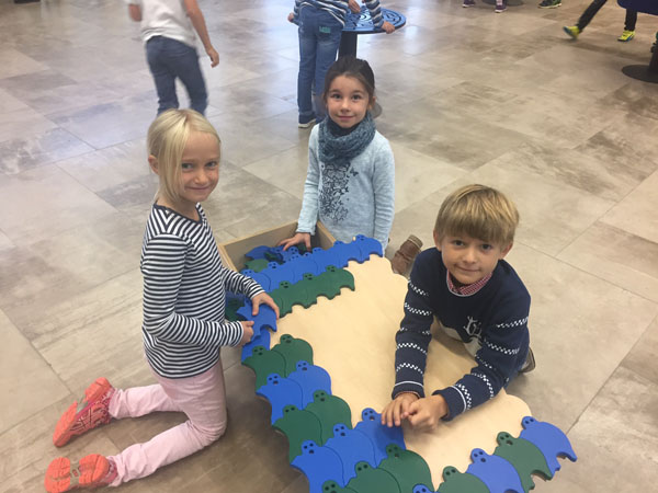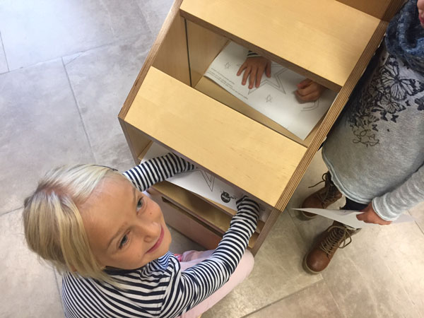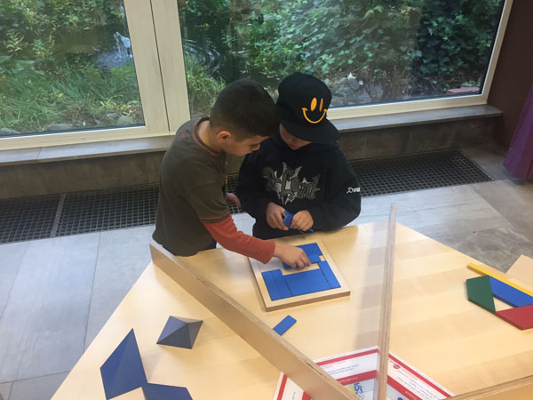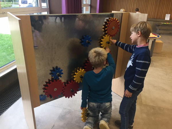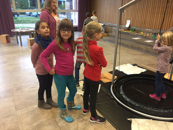 Sie konnten Formen fühlen oder sich im Spiegelhäuschen unendlich oft von allen Seiten sehen oder erstaunt feststellen, dass der direkte Weg nicht immer der schnellste ist. Diese und viele weitere spannende mathematische Experimente durften die Kinder erleben!