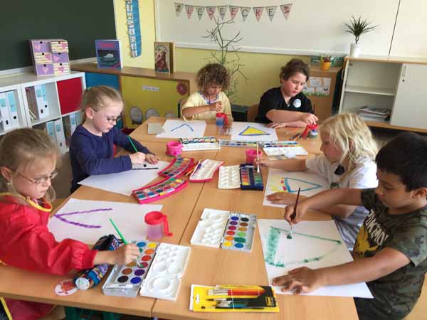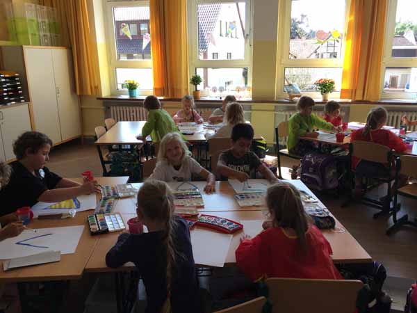 Auch in Kunst haben wir eine Menge Spaß. Dort haben wir Elmar ganz bunt angemalt.