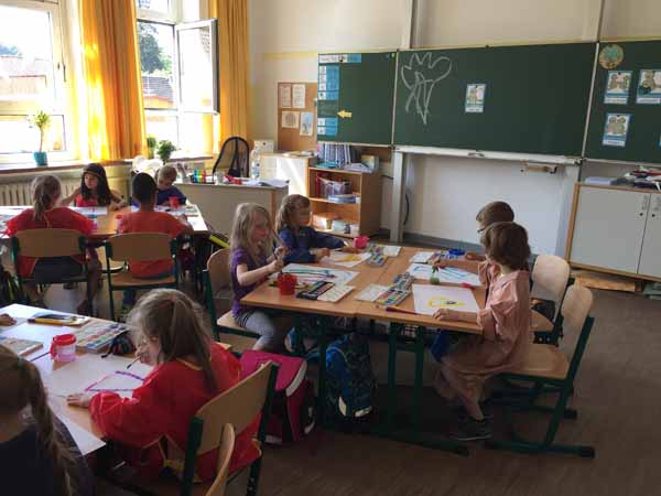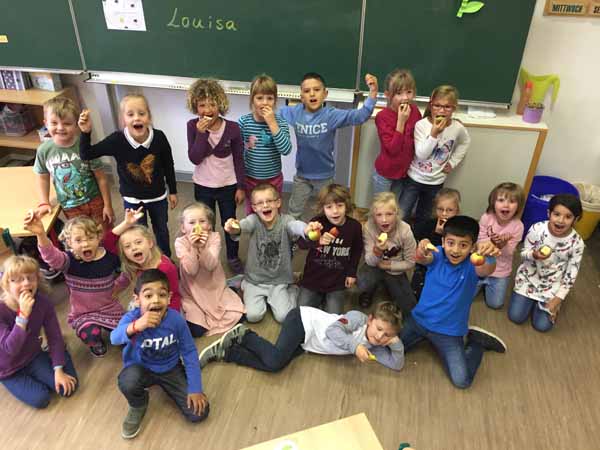 Die ersten Schulwochen haben wir nun geschafft. Wir haben schon eine Menge gelernt. Zum Beispiel können wie jetzt schon den Buchstaben A-wie Apfel oder E-wie Elmar. Dazu haben wir in Sachunterricht Äpfel untersucht und gegessen. Mhhhhh lecker :). Aber auch die Buchstaben L-wie Löwe und O-wie Oma haben wir schon gelernt.