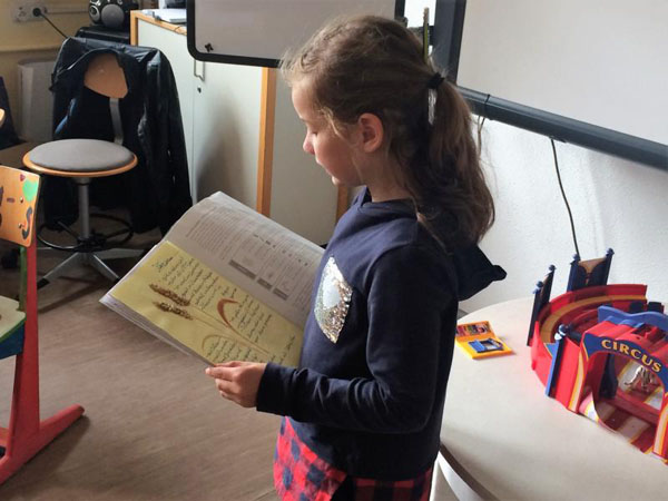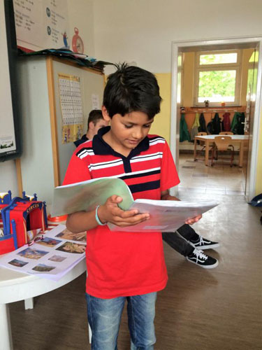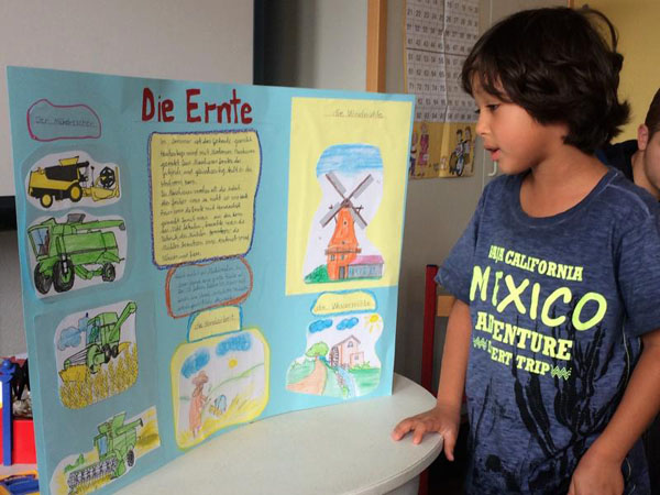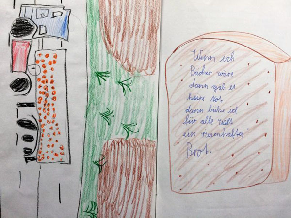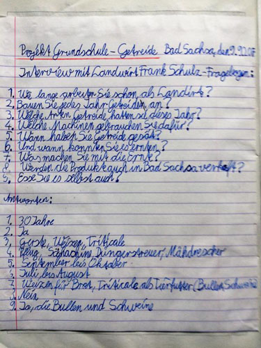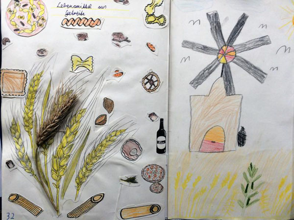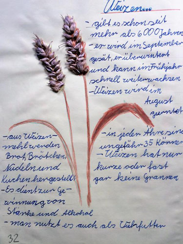 Marlene: Auch der Test war gut! Das Schreiben von Rezepten hat mir Spaß gemacht. Unser Thementisch mit verschiedenen Getreiden, Körnern und Fahrzeugen war schön.