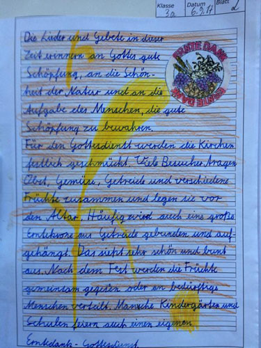 Gabriel: Das Lapbook hat mir gefallen. Und die Zusatzaufgabe: ich habe ein Plakat zum Thema „Ernte“ gemacht.